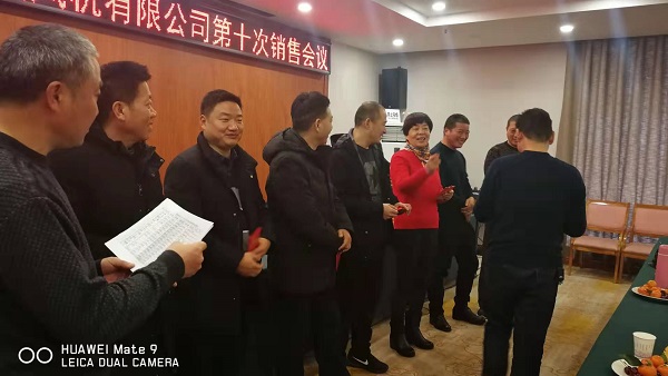 新年將至,周口市通用鼓風(fēng)機有限公司于2020年1月11日,在周口飯店召開第十次銷售工作會議。會議由王雷經(jīng)理主持,公司董事長兼總經(jīng)理李生華先生回顧了20年來企業(yè)的發(fā)展歷程,總結(jié)了一年來的成績與不足,對今后公司逐步實現(xiàn)生產(chǎn)設(shè)備智能化、企業(yè)管理現(xiàn)代化,生產(chǎn)環(huán)節(jié)規(guī)范化做出了計劃安排,希望公司經(jīng)過大家的共同努力,再上一個新臺階。公司銷售經(jīng)理崔峰義、生產(chǎn)經(jīng)理杜西亮、技術(shù)經(jīng)理張松旺分別做重要講話。各銷售經(jīng)理交流了工作中存在的問題,對如何更好的服務(wù)于客戶做了深刻探討,希望公司在產(chǎn)品的生產(chǎn)工藝,交貨工期,售后技術(shù)服務(wù)等方面更加完善。